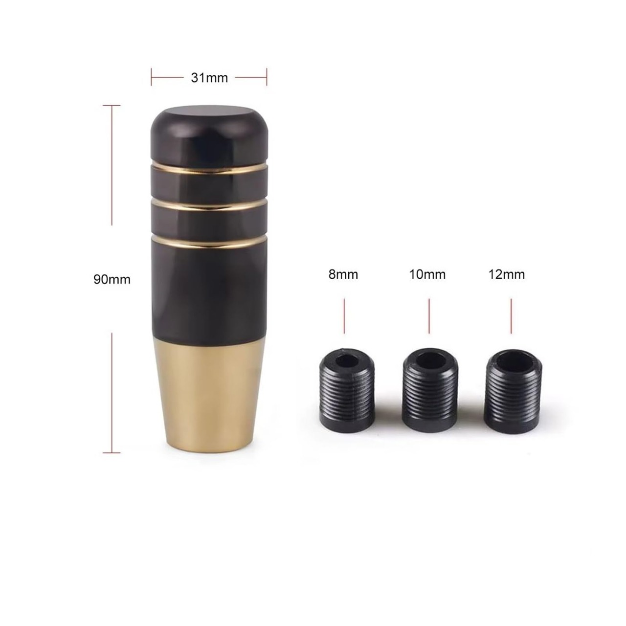 9CM アルミ ブラック ゴールド ギアシフトノブ レーシングカー ユニバーサル マニュアルトランスミッション シフター レバーノブ 3つのアダプター付き