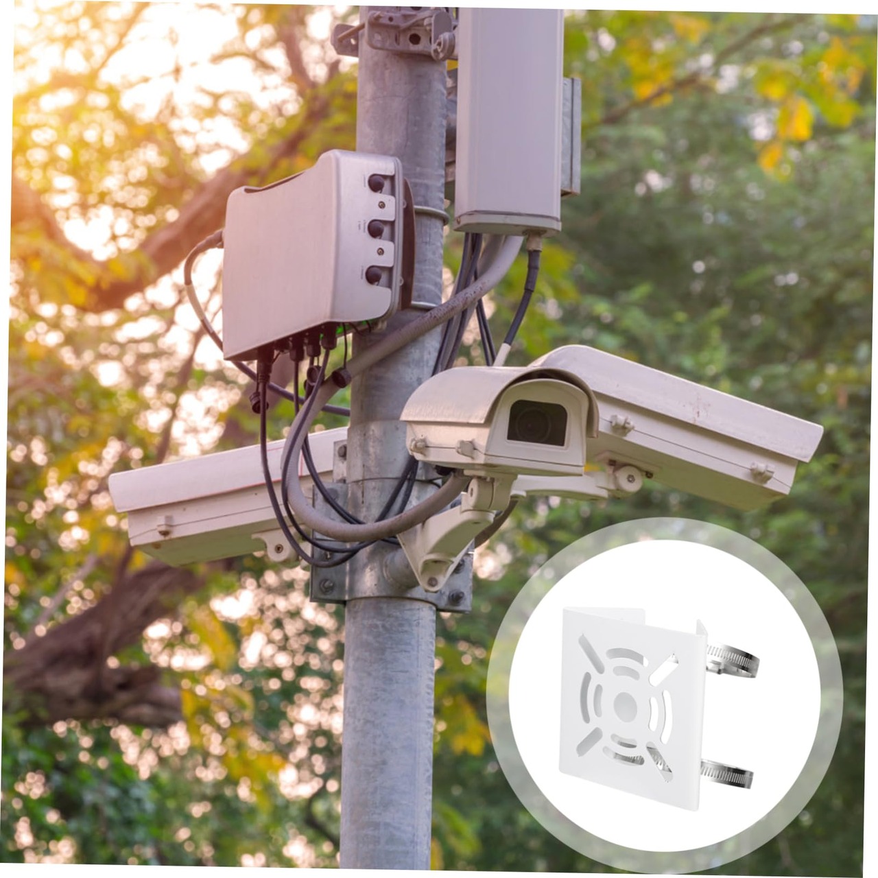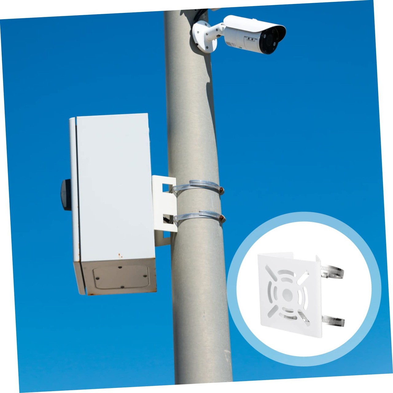 ポールマウントブラケットカメラ: だけでなく、レターボックス、街路灯など、ウェブカメラスタンドなどの他のオブジェクトの固定にも使用できます