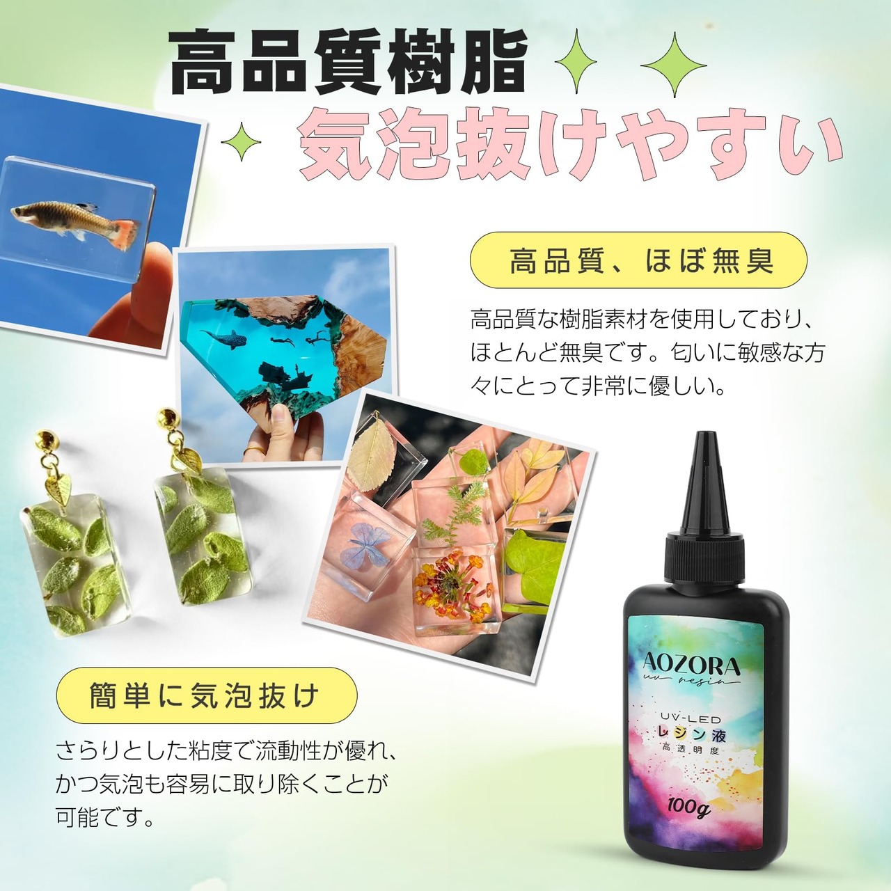【 DIYの多用途化】AOZORAのレジン液は大容量で激安、アートジュエリーDIY手作りの制作、金型鋳造、レジンコーティング、工芸品装飾などに非常に適しています。お気に入りのアクセサリーにユニークな魅力を添えたいときや唯一無二の手作り品を作りたいときにもご利用いただけます。