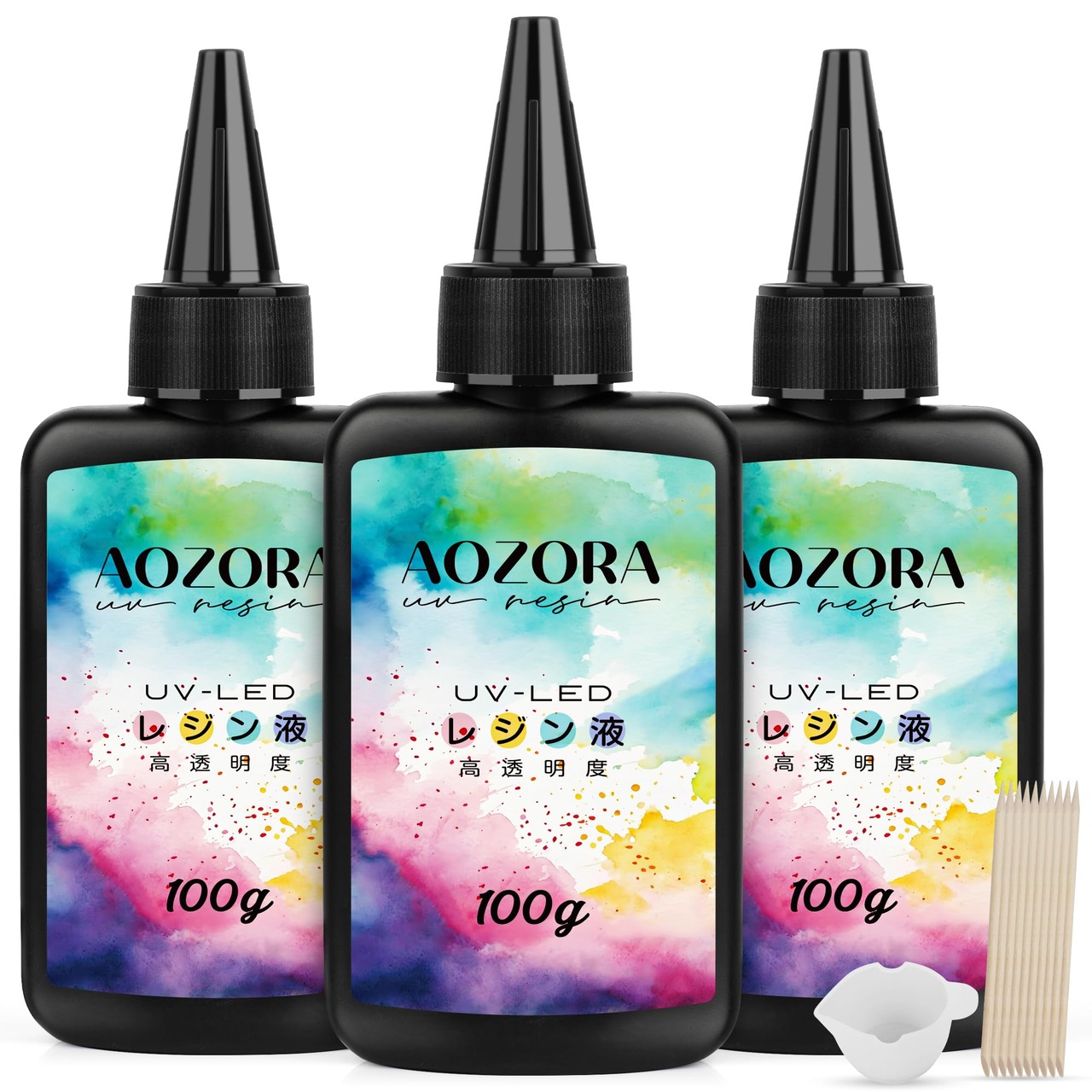 AOZORA レジン液 大容量 300g ハードタイプ 黄変しにくい UVレジン液 急速硬化 高い透明度 UV/LED対応 詰替用 人気 初心者向け DIY手作り