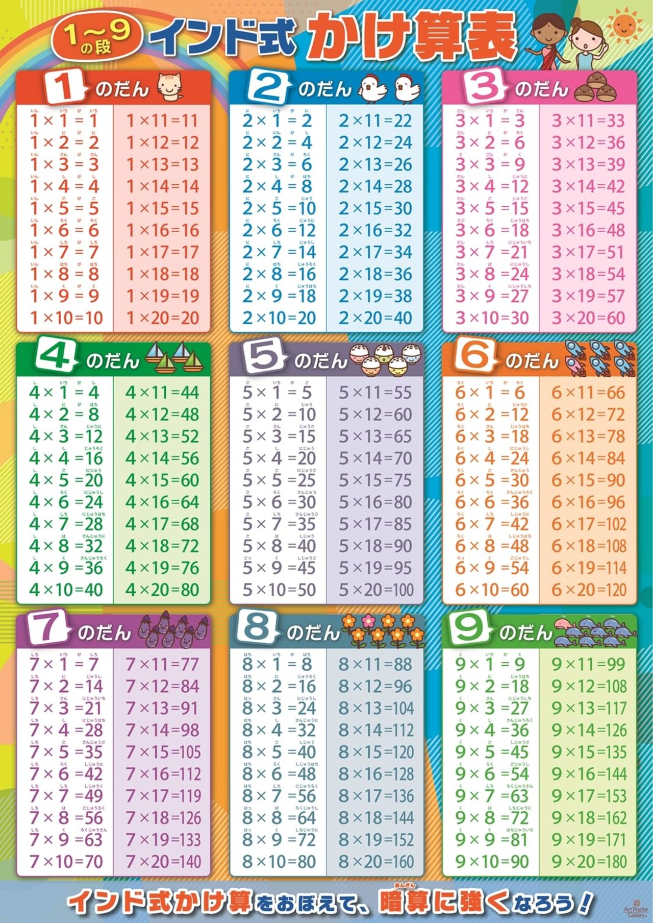 かけ算表 九九表 掛け算 インド式 2枚セット お風呂ポスター A2サイズ 数字 算数 知育 学習 おもちゃ 練習 小学校受験 幼児 学校 学習 学習ポスター 防水仕様 日本製