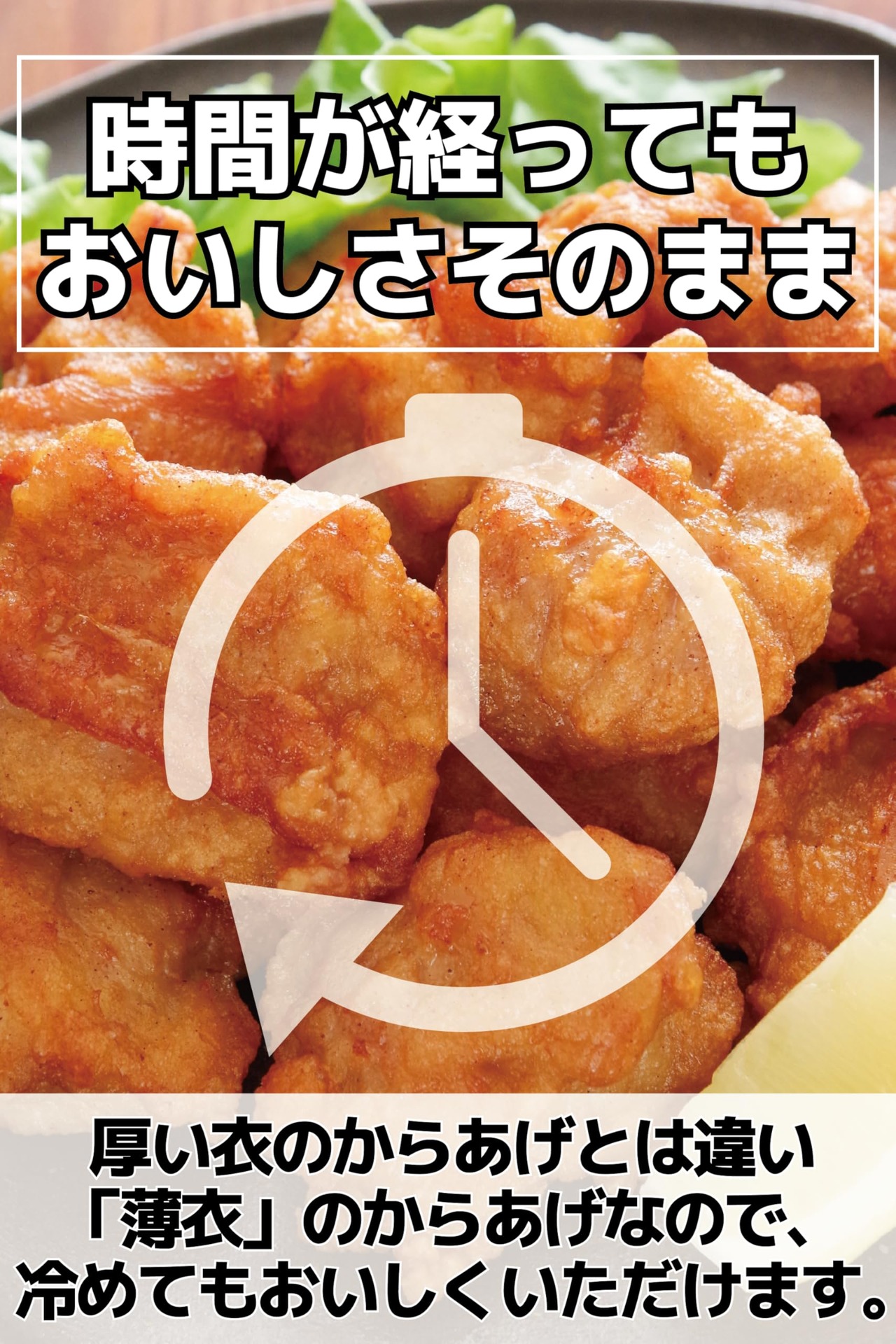 ✅【時間が経ってもおいしさそのまま】厚い衣のからあげとは違い「薄衣」のからあげなので、時間が経ってもサクサク感を維持しやすい冷凍からあげです。毎日のお弁当に入れても、冷めても美味しくいただけます。