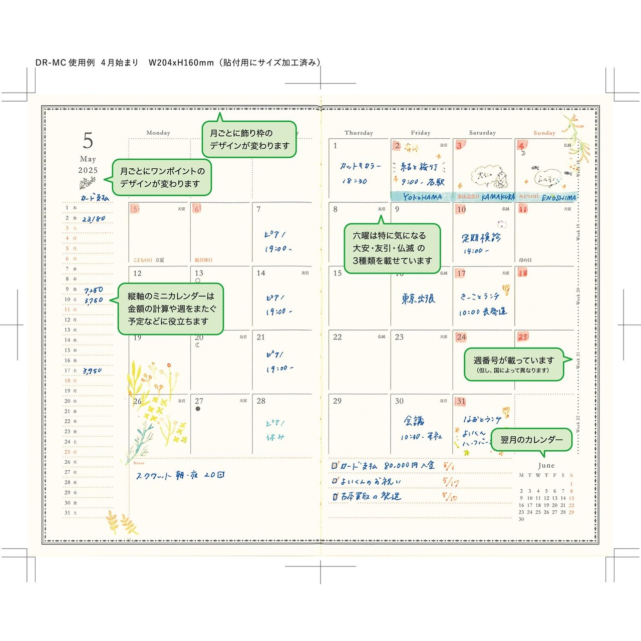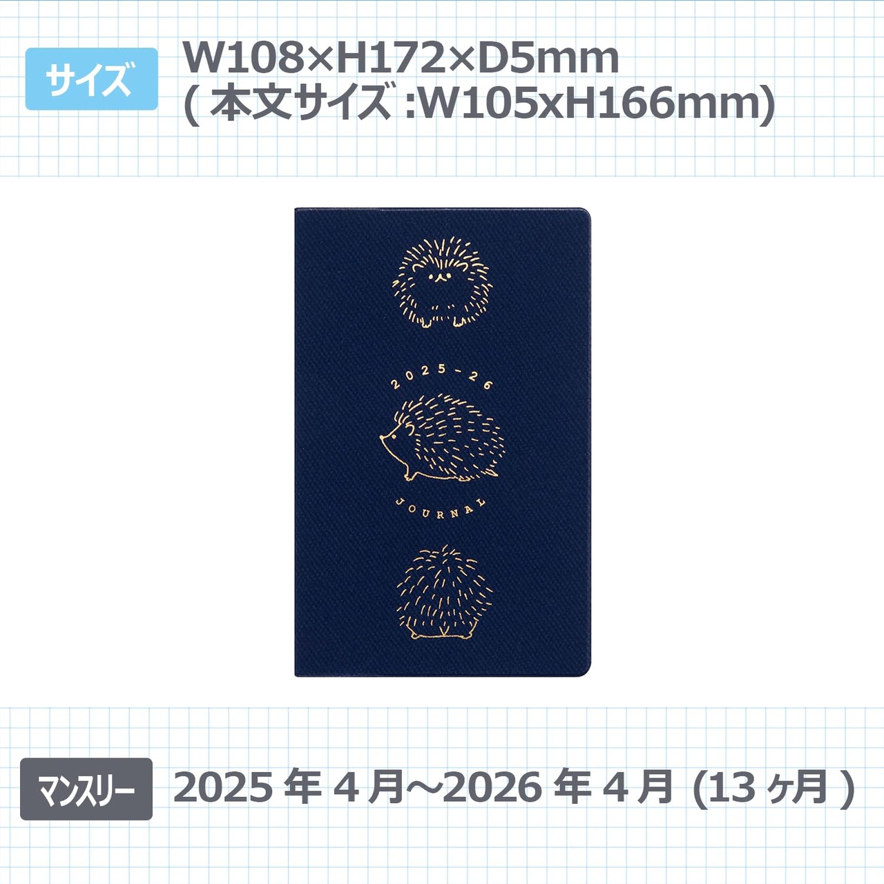 エルコミュ―ン マトカ 手帳 2025年 4月始まり コンパクト マンスリー ラウンド はりねずみ ネイビー DR-MC-374