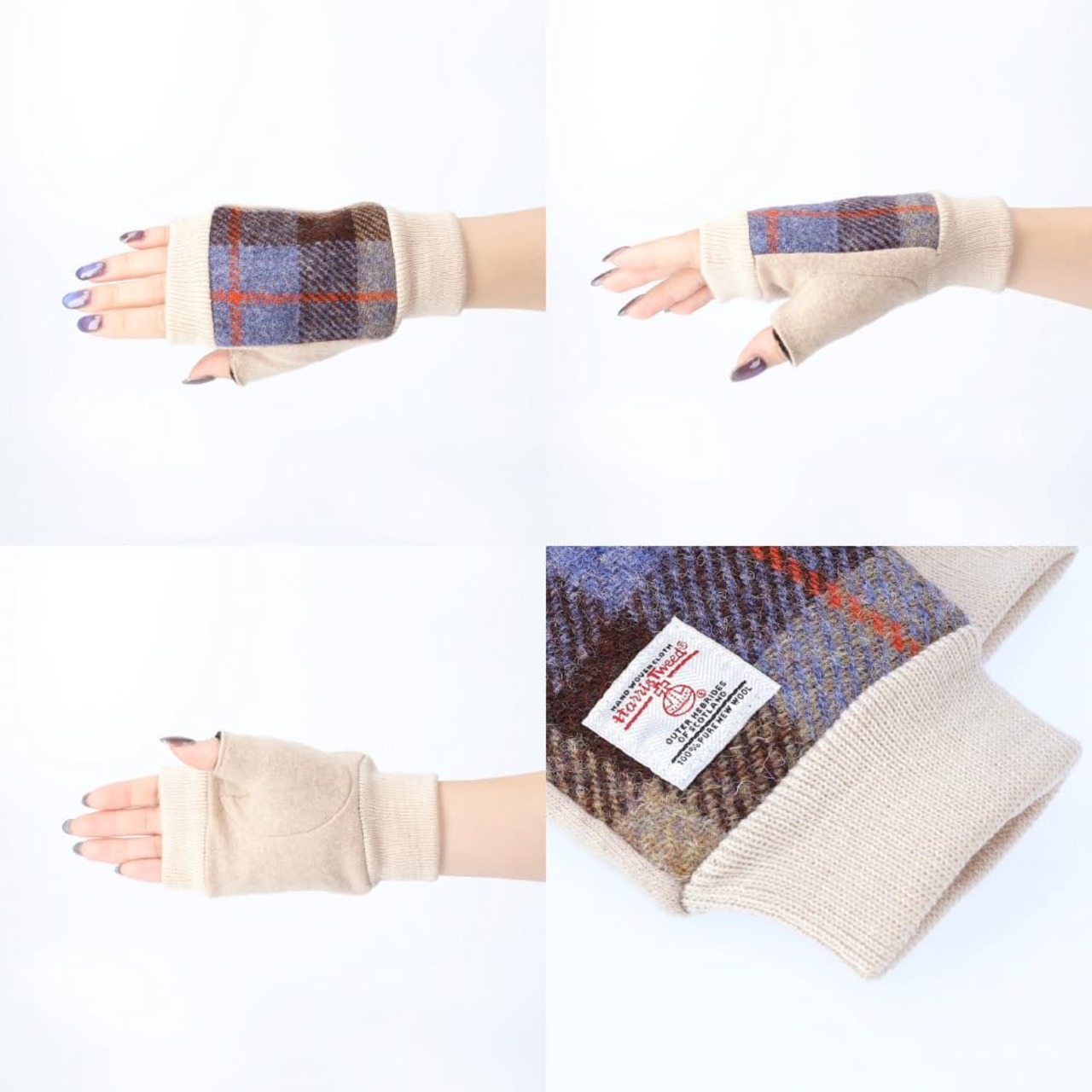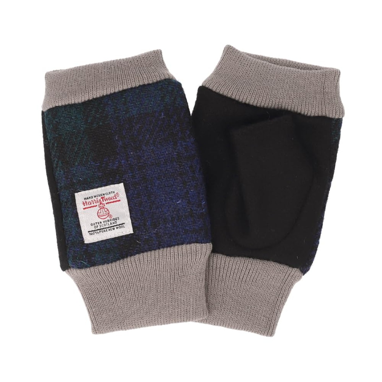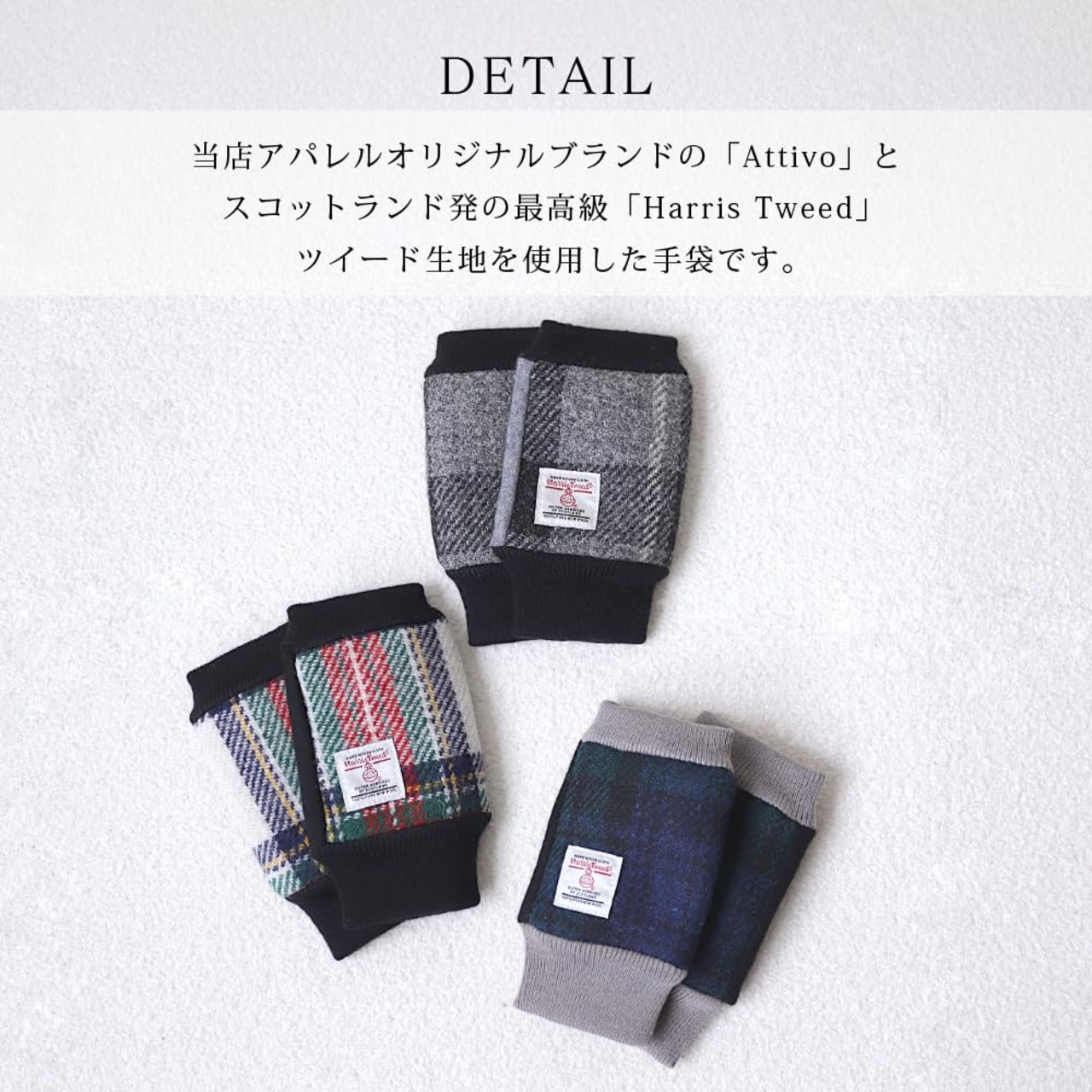 [アレグレット] 【Attivo アッティーヴォ】ATHT02H ハリスツイードグローブ 半指 裏地ベルベット仕様 レディース [0175(掌側ブラックウール)/インディゴブルーチェック/フリーサイズ]