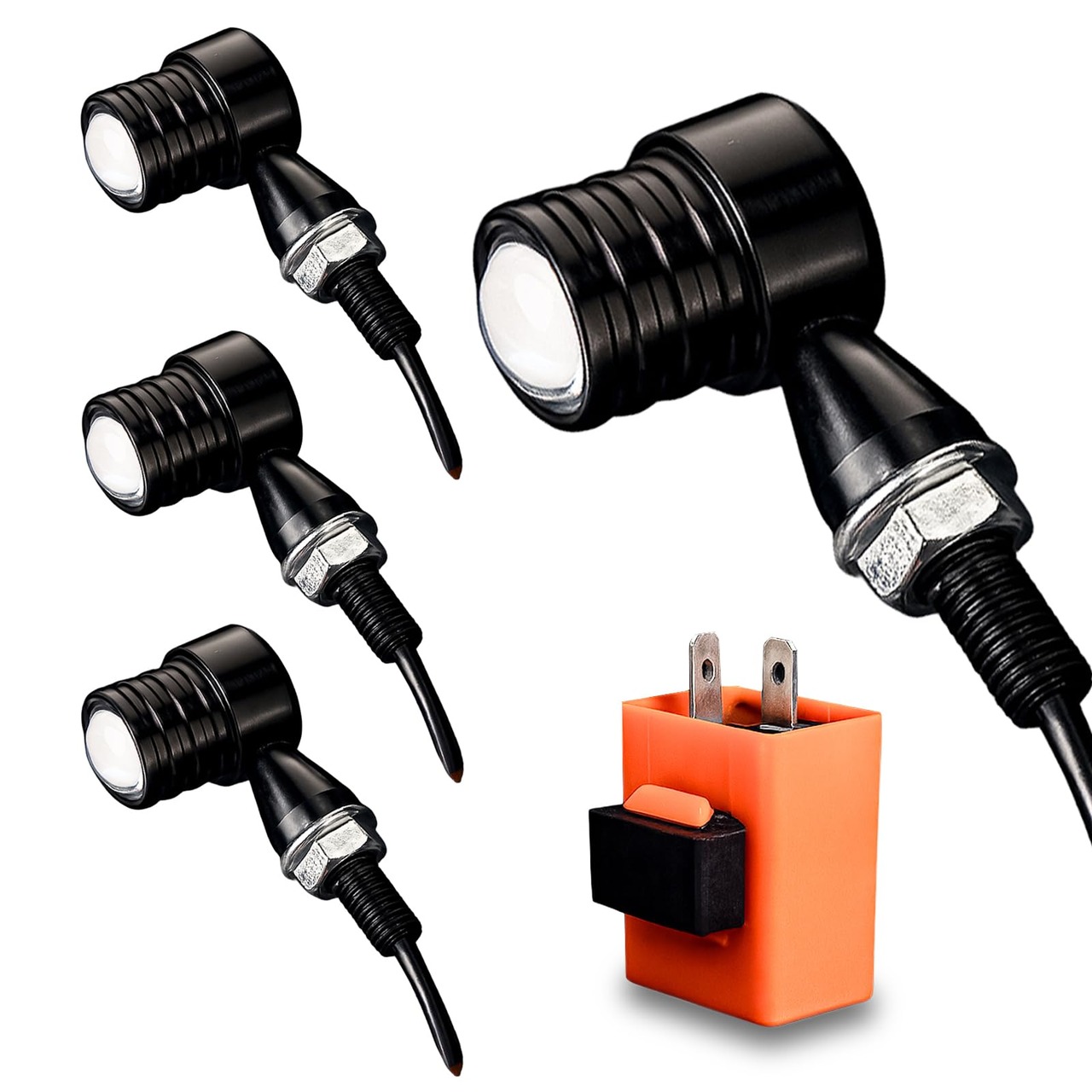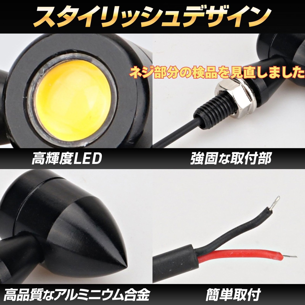 YESprime バイク ウインカー 砲弾型 LED 12V 汎用 高輝度 ミニ 防水 アンバー 方向指示器 ウィンカー 4個 リレー付き Cタイプ