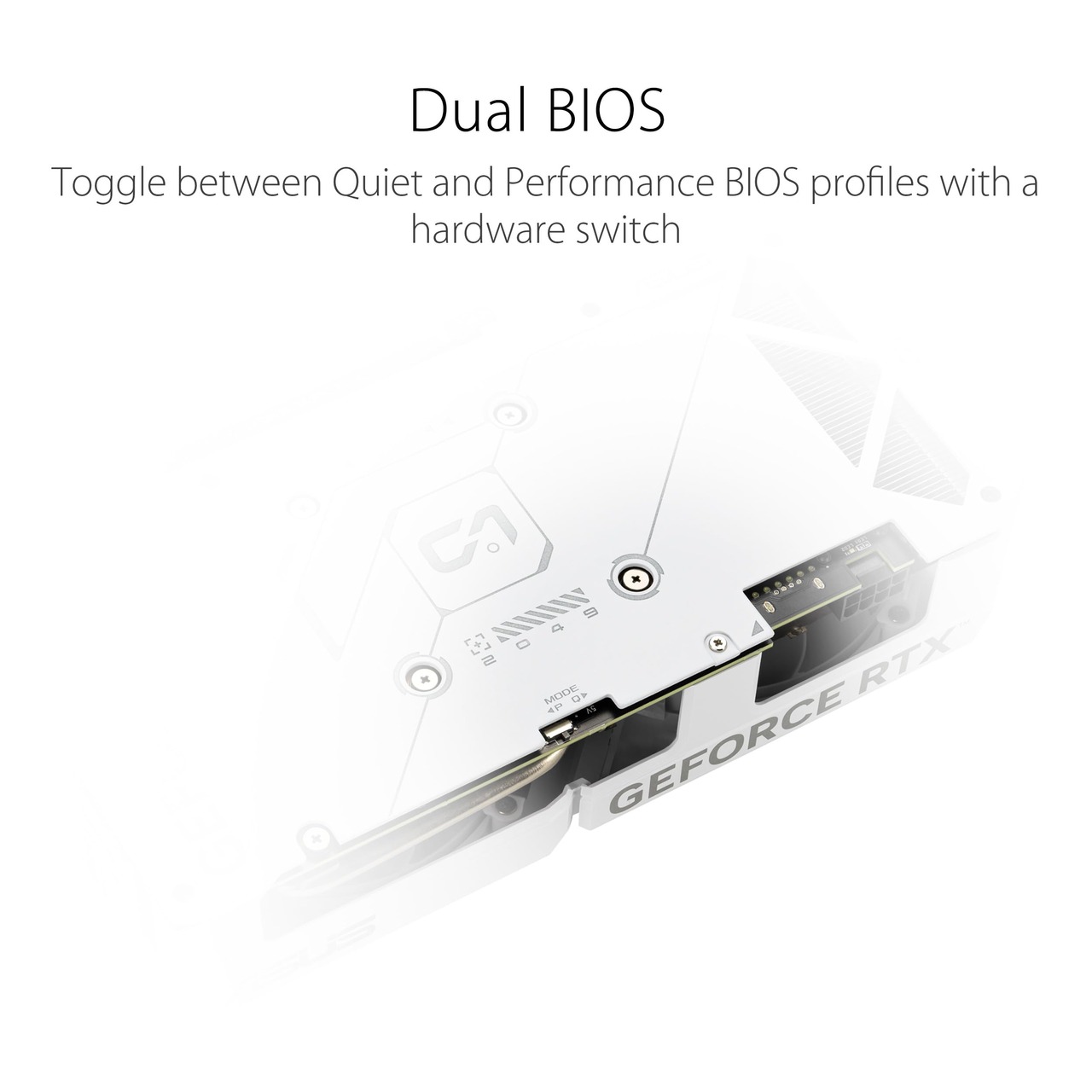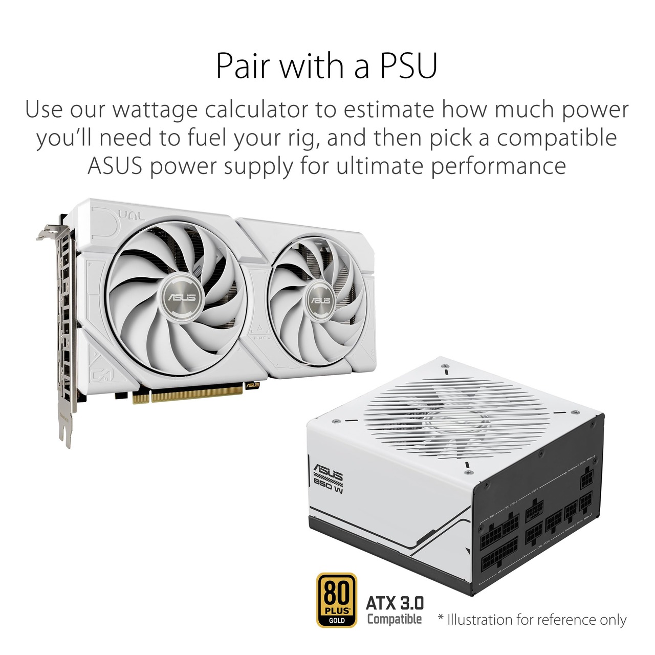 ASUS Dual GeForce RTX™ 4060 EVO ホワイト OC Edition 8GB GDDR6 (PCIe 4.0、8GB GDDR6、DLSS 3、HDMI 2.1a、DisplayPort 1.4a、Axial-tech ファンデザイン、0dBテクノロジー、デュアルBIOS、Auto-Extreme Tech)。