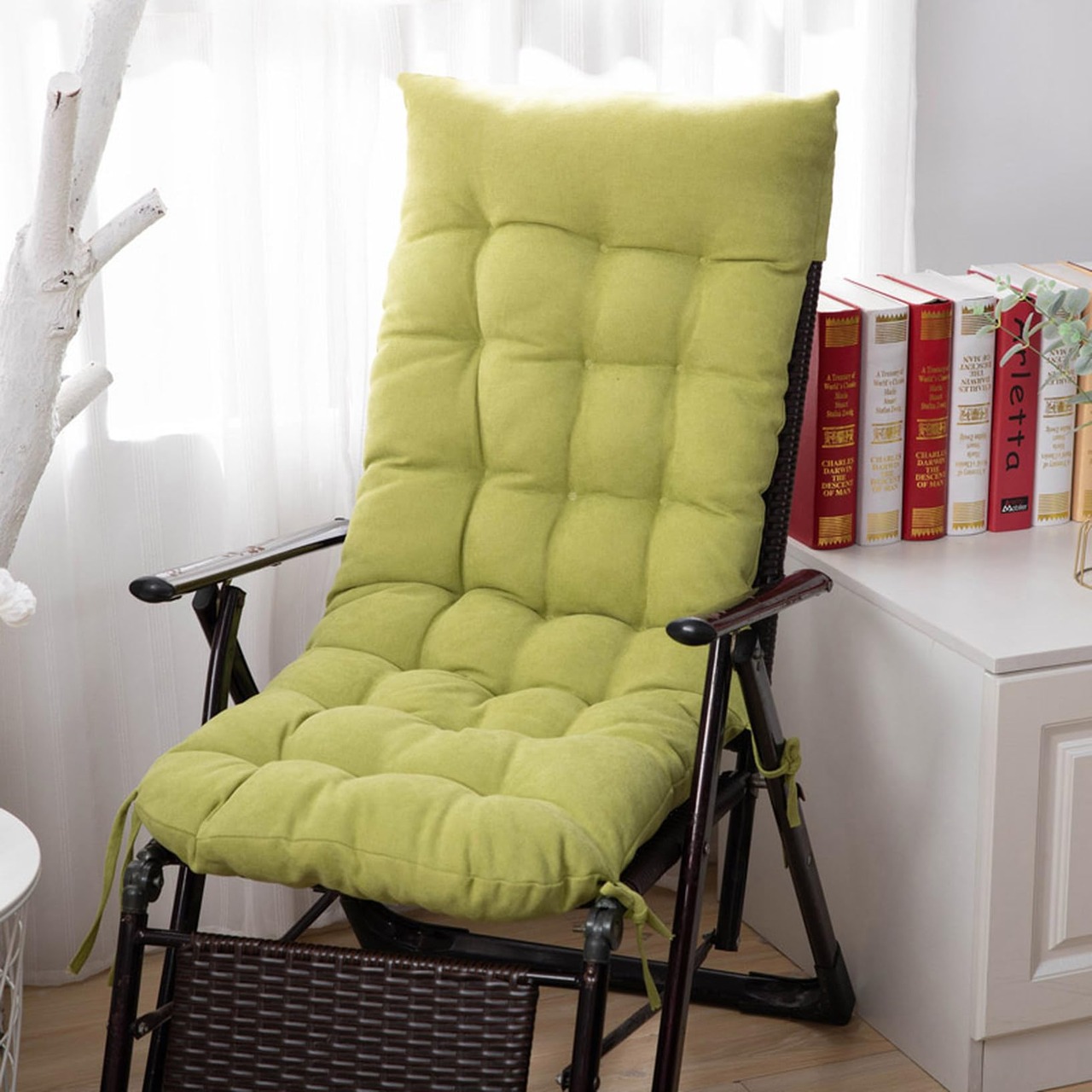 [KUZQIM] リクライニングチェア シートクッション ロング 座布団 椅子 ソファー 長方形 チェアクッション 座面クッション 長座布団 背もたれ クッション 48*120*8 ロングチェア 寝椅子 ベンチシート グリーン ロングイス ロングクッション 長い椅子