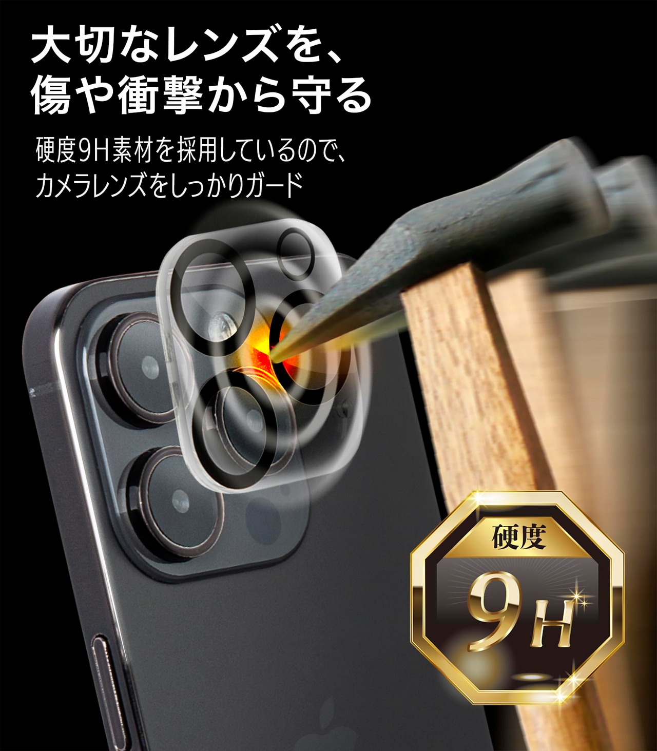 日本メーカープレミアムガラスフィルムiPhone強化カメラ保護フィルム スマホ守るアイフォン用フィルム (レギュラー, iPhone16Pro)