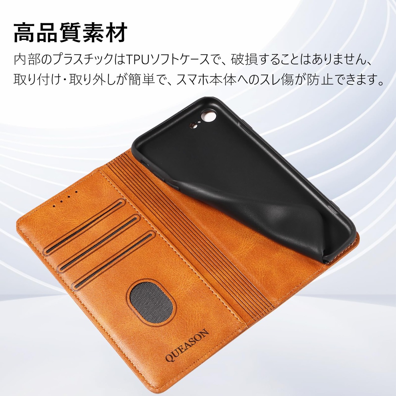 QUEASON【iPhone SE 第2世代/第3世代/iPhone7/iPhone8 通用手帳ケース】iphonese第2世代 ケース 手帳型 携帯ケース iphonese第3世代 ケース 手帳型 スタンド機能 iphone8 ケース 手帳型 iphone7ケース 手帳型 薄型ケース カード収納 落下防止 マグネット式 耐衝撃 全面保護 防塵(カーキ)