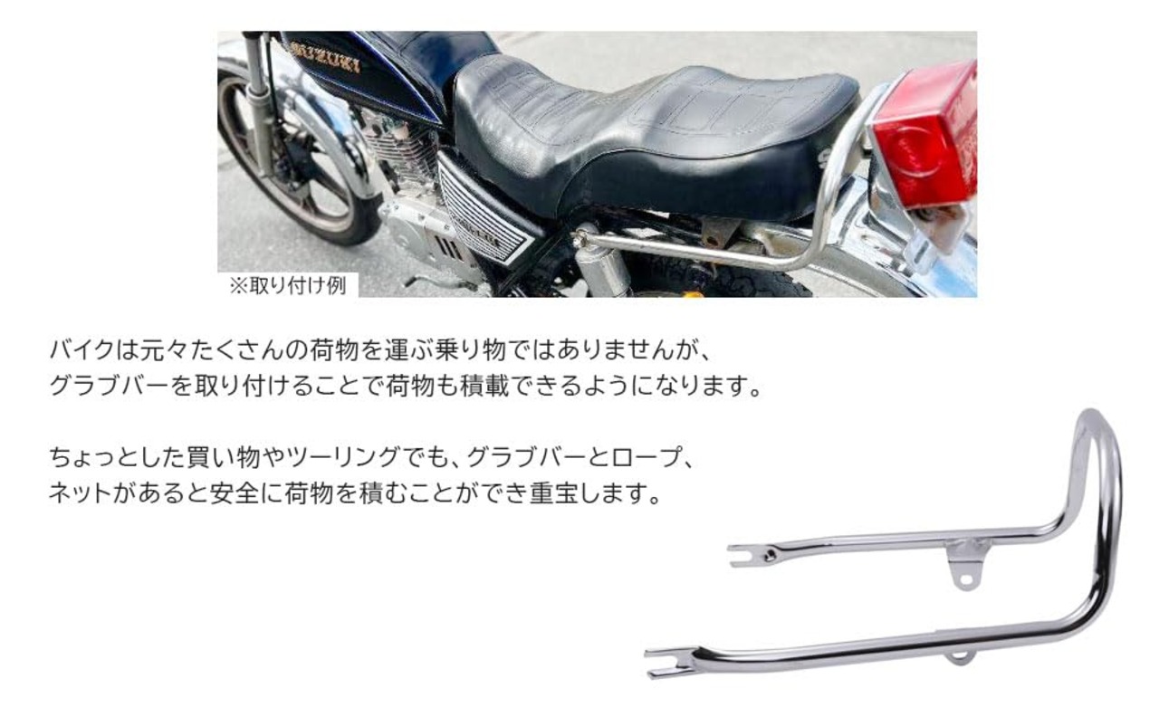 スズキ SUZUKI 用 グラブバー タンデムバー GN125 GN125H メッキ タンデムグリップ フック 二人乗り シート 荷台 キャリア リアアーム レストグラブバー リアラック 社外品 カスタムパーツ