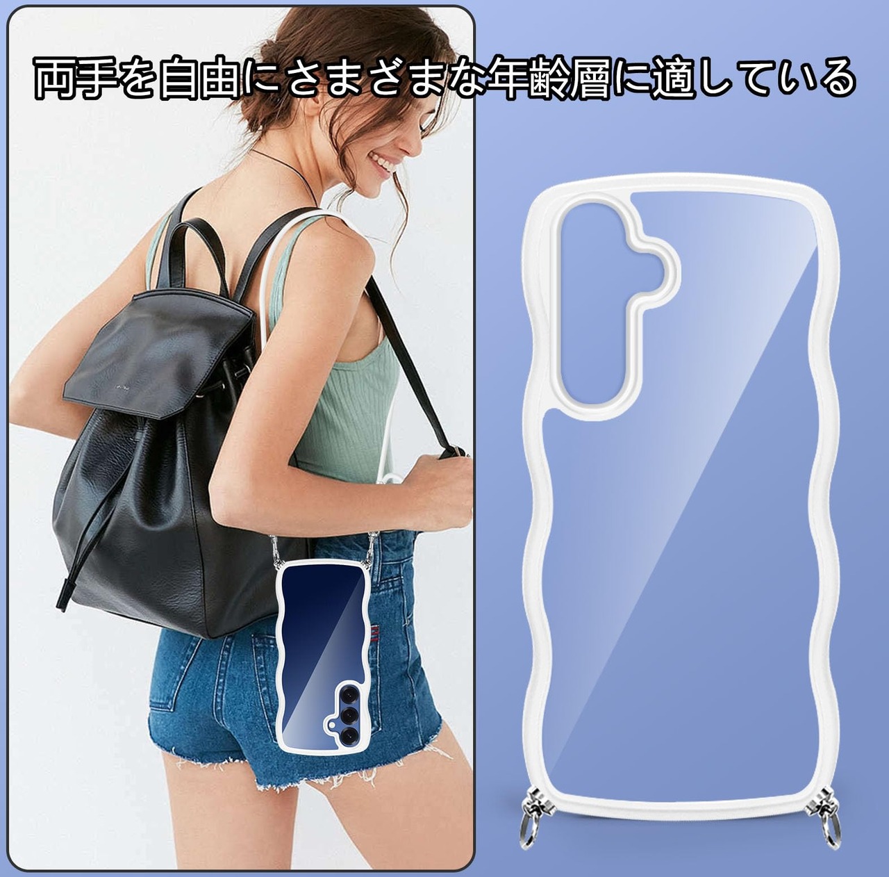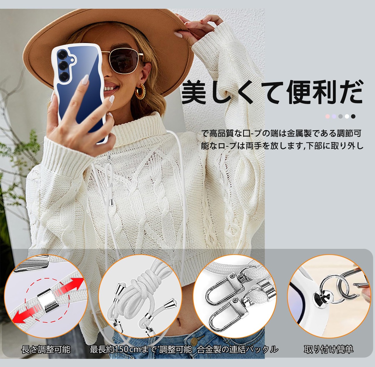 Galaxy S25 ケース クリア ショルダー SC-51F スマホケース ス ストラップ付き ギャラクシーS25 カバー 耐衝撃 透明 かわいい 人気 薄型 軽量 首かけ 肩掛け 縄掛けケー 取り外し可能 長さ調整可能 ワイヤレス充電対応(ホワイト)