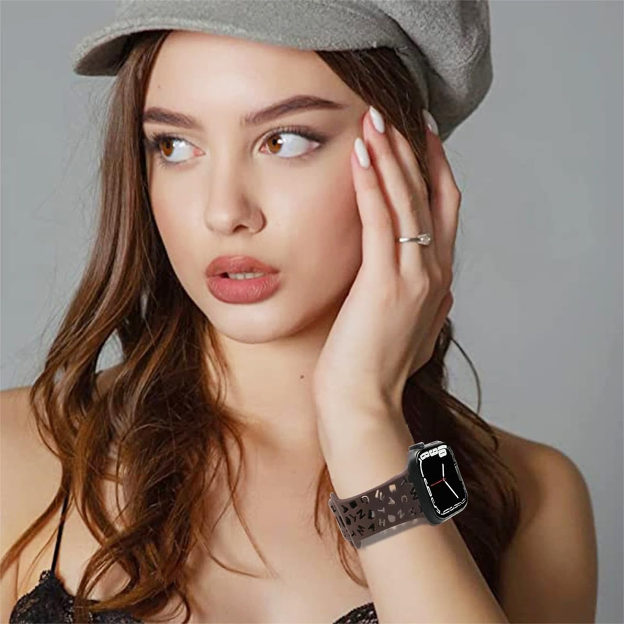 【プレミアムシリコン材料】Apple Watchに対応した高品質英字スタイルの中空デザイン、エコ素材を使用して精巧に作られた。Apple Watch シリコンバンドの素材は肌に優しい高品質ソフトシリコン素材です。とても柔らかく、快適で耐久性があります、水洗いができます。お客樣に素晴らしい着用体験をもらいます。