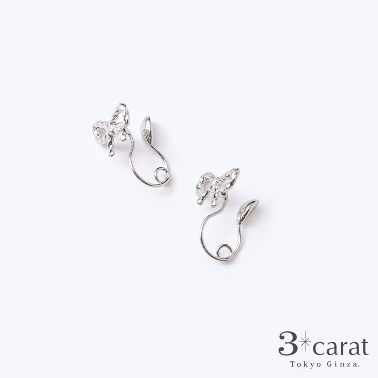 3carat ループフィット リボン シルバー 痛くない 新感覚 イヤリング レディース 軽量 落ちにくい ニッケルフリー 金属アレルギー対応 ノンホールピアス 日本製