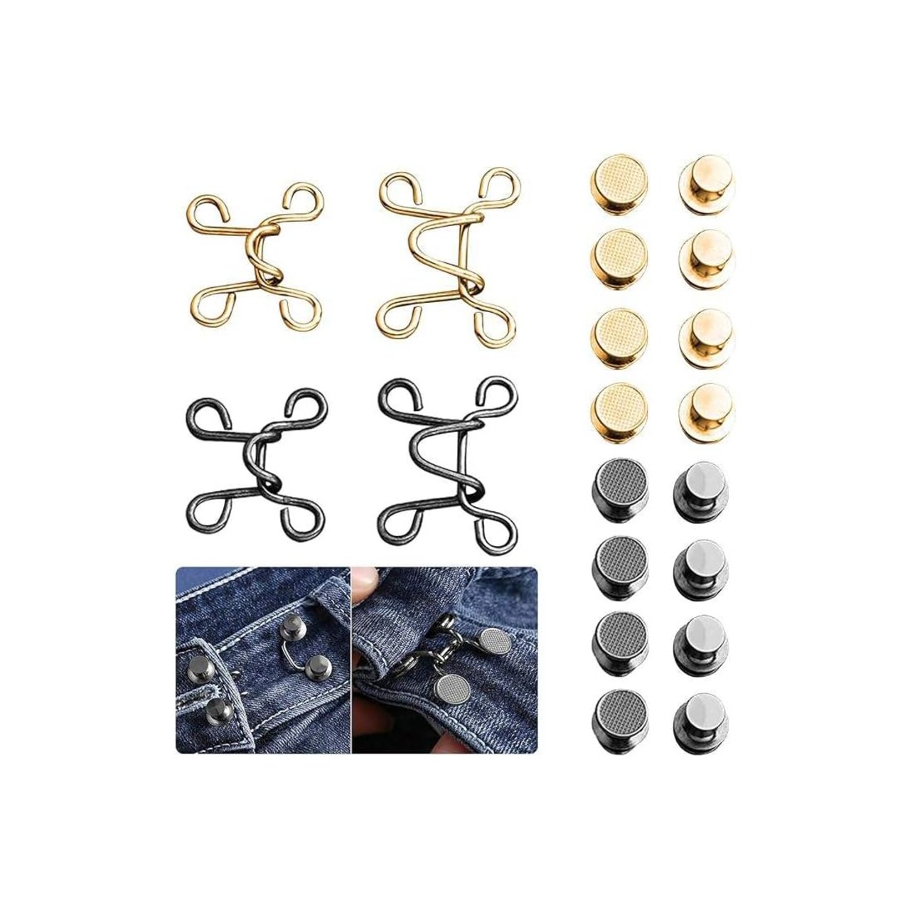 ジーンズ 調整ボタン リベット付き 3セット ウエスト アジャスター ウエストボタン 金属ジーンズボタン 縫製不要 縫い目ない ウエストバックル ウエスト 調整 取り外し可能ボタン 調節可能 (ゴールド)
