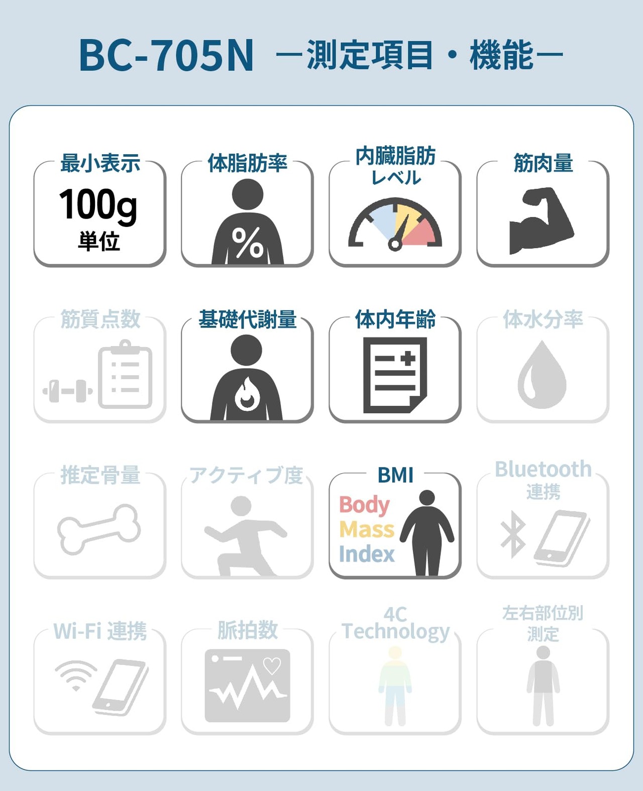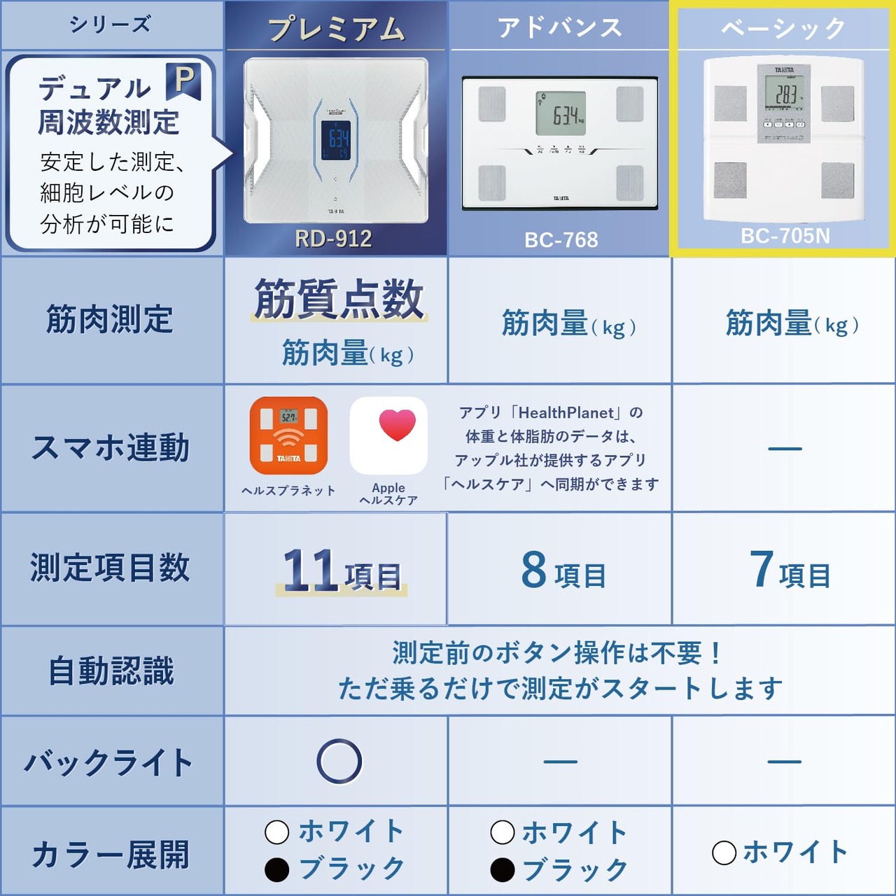 タニタ 体重計 体組成計 ヘルスメーター BC-705N【体脂肪率/内臓脂肪レベル/筋肉量/基礎代謝量/体内年齢/BMI/日本製/乗るピタ】