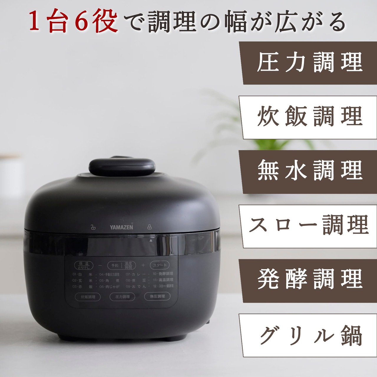 [山善] 電気圧力鍋 2.2L 一人暮らし 二人暮らし 2WAY仕様 調理モード6種類 (圧力/炊飯/発酵/無水/鍋/スロー調理) 予約 保温 60種レシピブック付き ブラック EPCB-M220(B)
