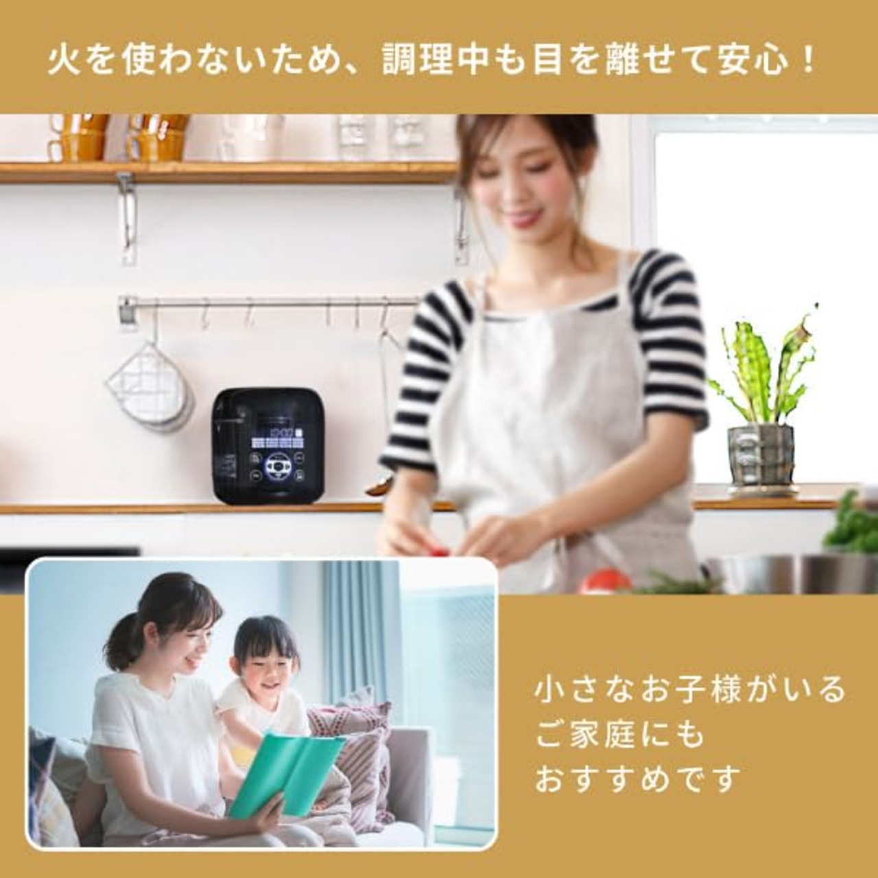 火を使わないため、調理中も目を離せて安心!小さなお子様がいるご家庭にもおすすめです。