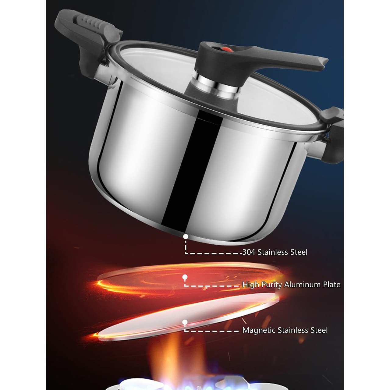 特徴精度圧力制御システムと腐食耐性304鉄鋼構造高熱の調理中に一貫した鉄鋼構造
