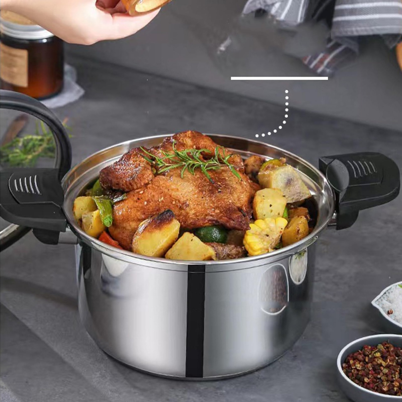 韓国のスタイル304ステンレス鋼の圧力鍋は、圧力技術で調理効率を30%向上させ、速い食事の準備に最適です