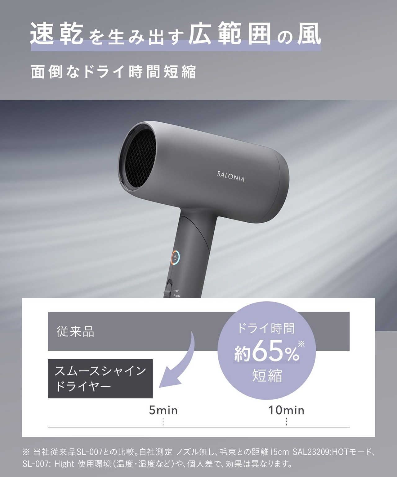 SALONIA サロニア スムースシャイン ドライヤー 大風量 速乾 軽量 ヘアドライヤー グレー【Amazon.co.jp限定】