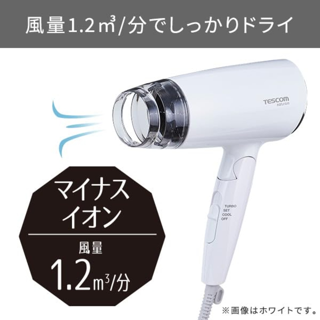 テスコム ドライヤー マイナスイオン 冷風 軽量 折りたたみ naturam ホワイト TD200B-W