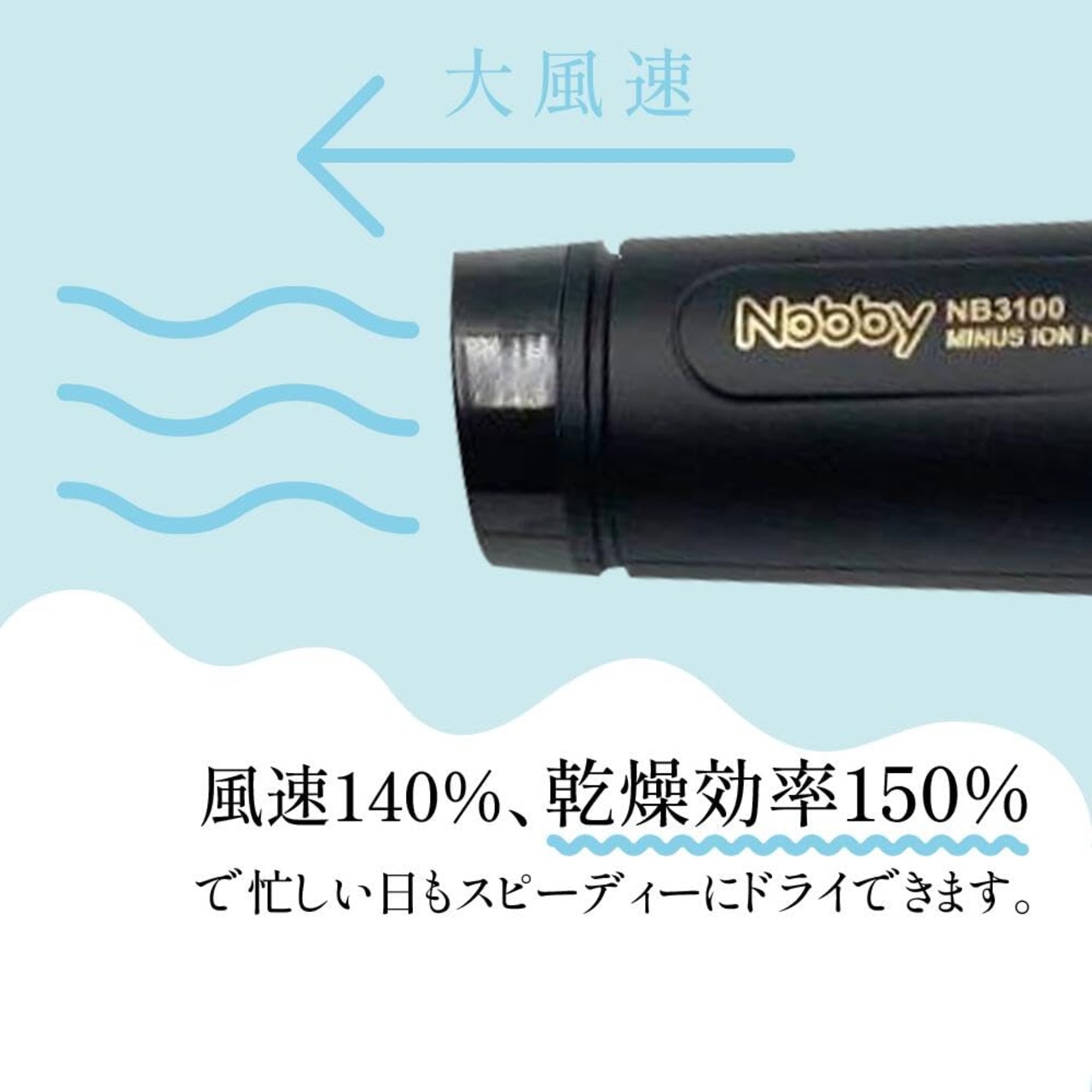 ノビー(Nobby) マイナスイオンヘアドライヤー NB3100 大風量 速乾 1500W 理美容専売 (ブラック)