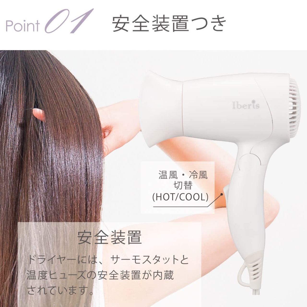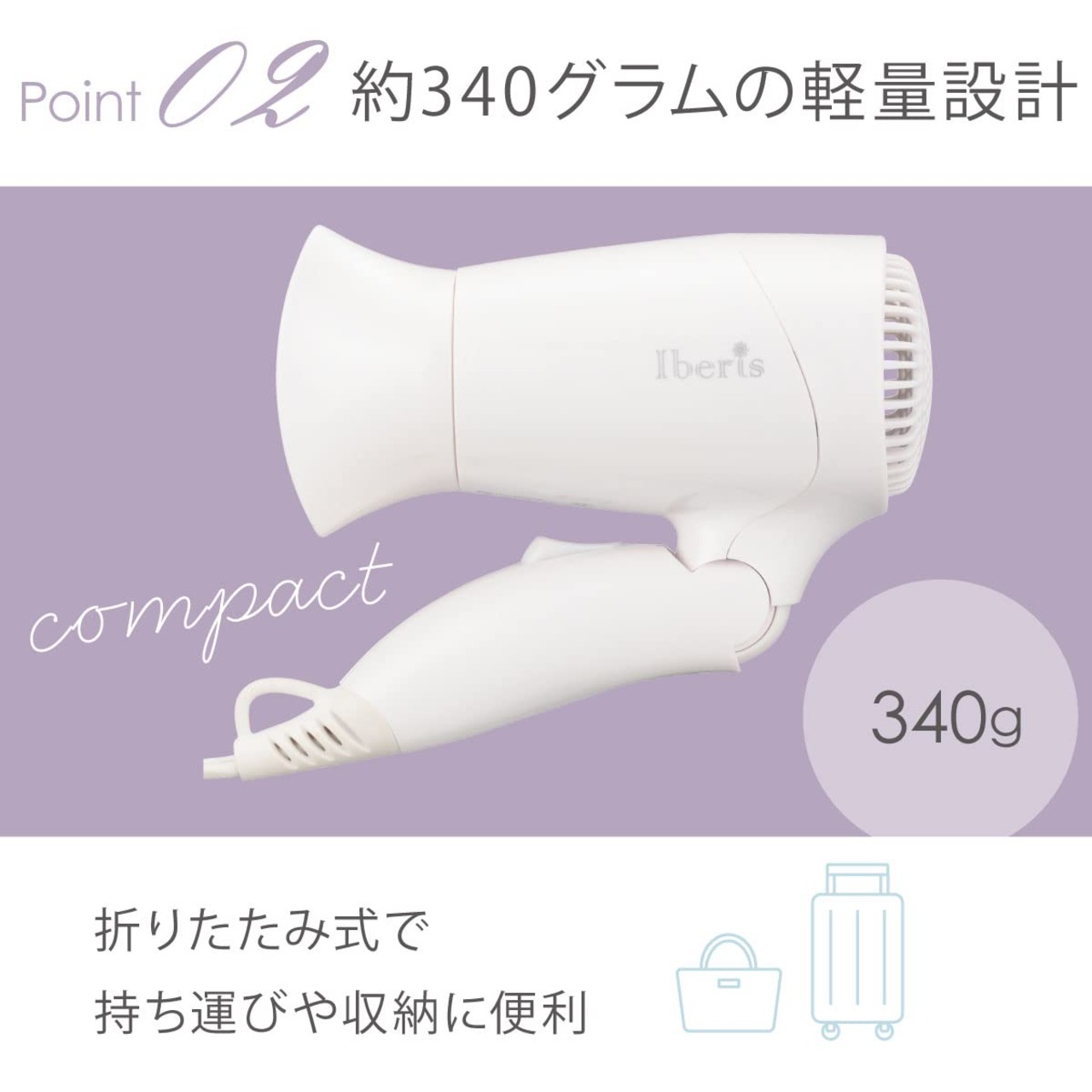 オーム(OHM) 電機Iberis ヘアドライヤー 折りたたみ 軽い 軽量 小さい ミニ コンパクト ポータブル 携帯用 旅行 男女兼用 バッグイン 出張 お出かけ シンプル ホワイト HB-HI556W 00-5699