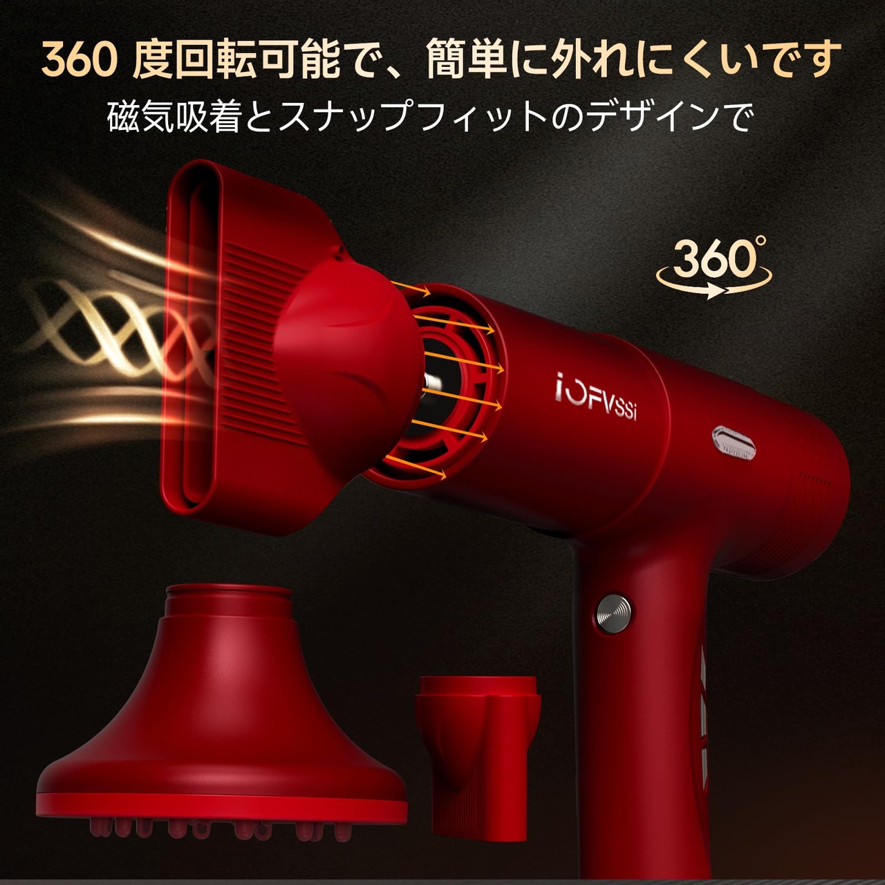 IOFVSSIドライヤー 速乾 大風量 ヘアドライヤー 高濃度マイナスイオン搭載 3段階温度調節 冷風/熱風 65dB低騒音 過熱保護機能 ノズル付き 家庭用/旅行用 ツヤ髪 美髪 静電気除去 PSE認証済み(ローズレッド)