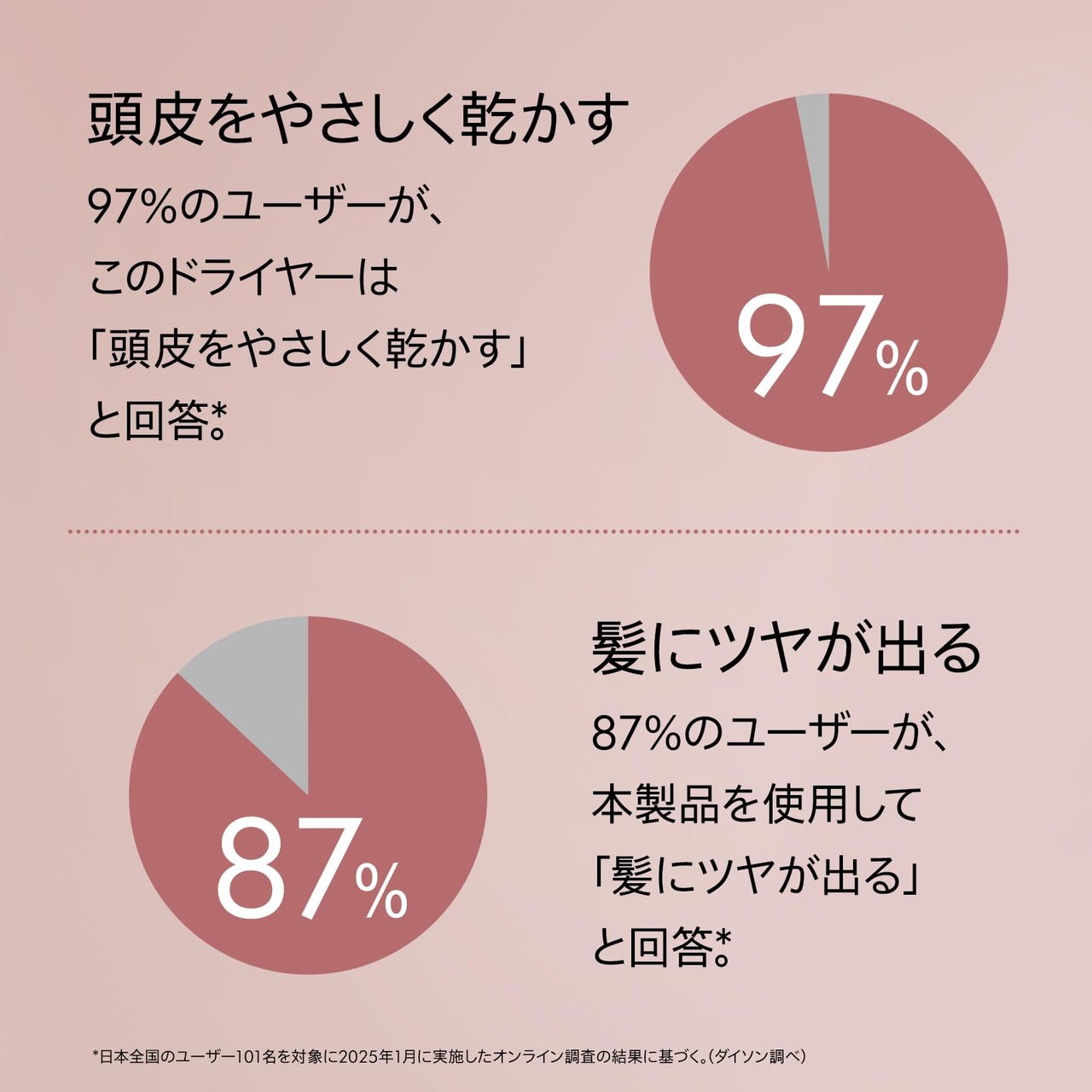 【風温を自動調整³】髪との距離に応じて風温を自動で調整することで、オーバードライを防ぎ、なめらかな髪に³。根元から毛先まで、長期的な髪本来のツヤを守ります³。