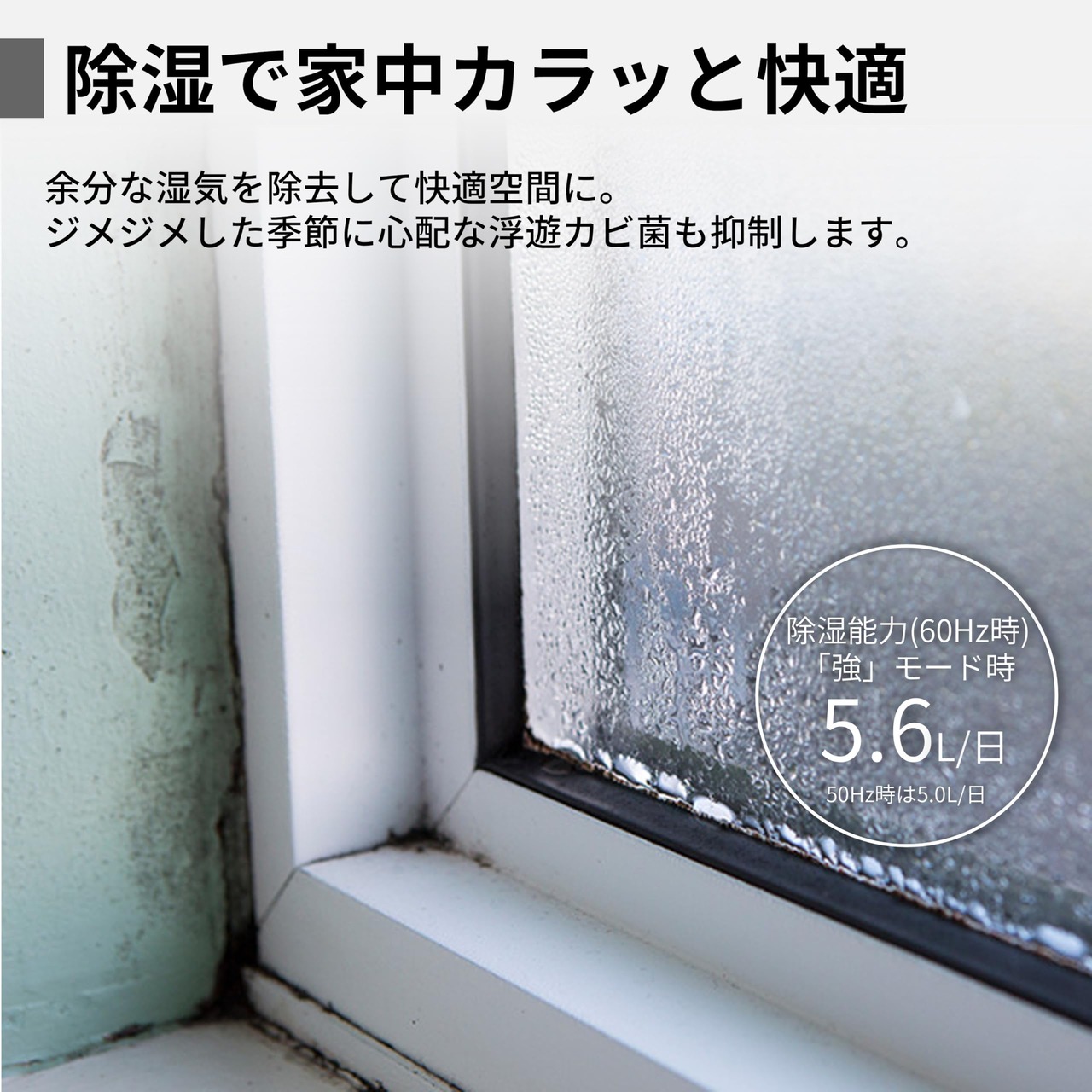 除湿能力:コンプレッサー方式 5.0/5.6/日(50/60Hz)
