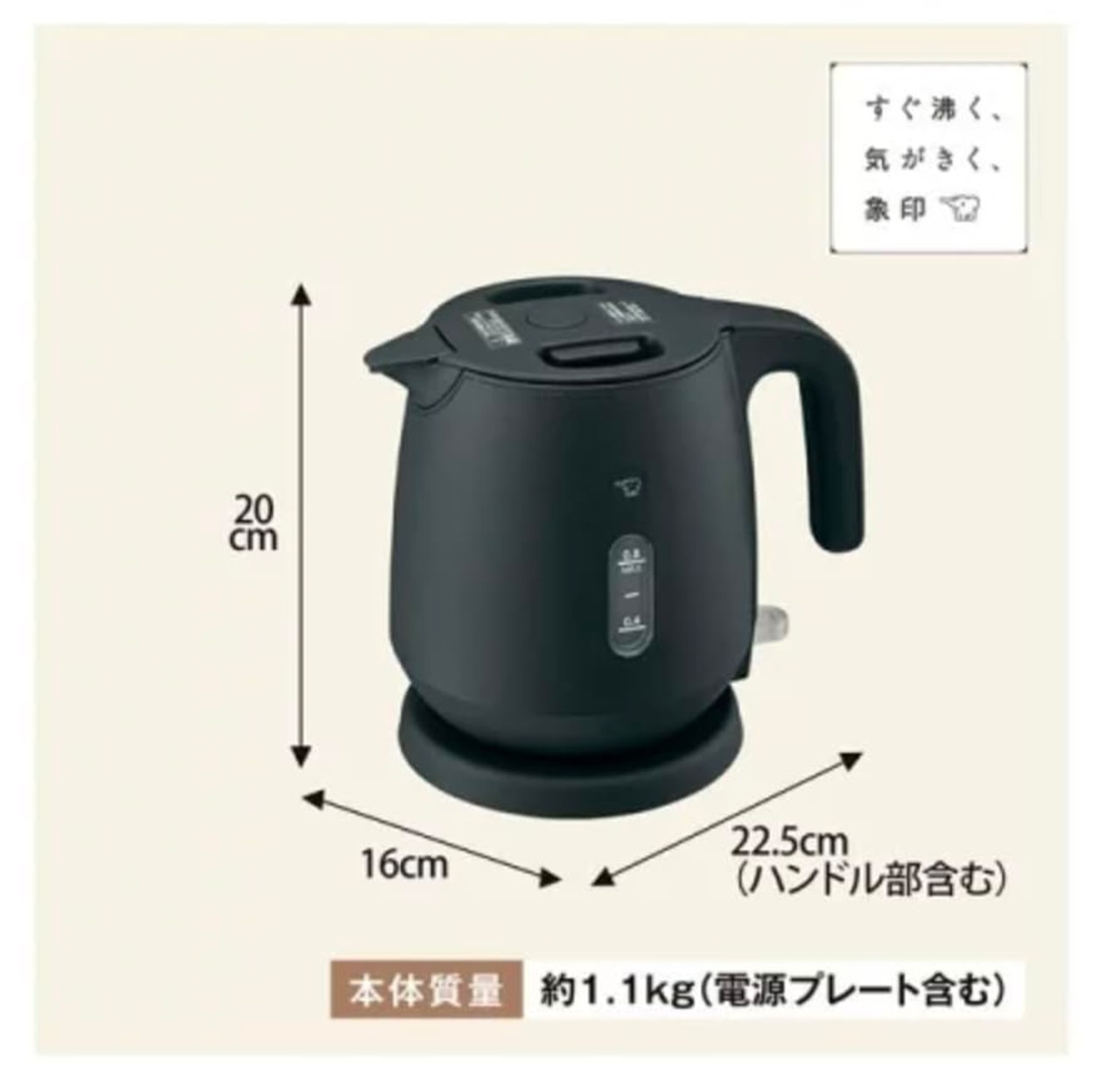 象印マホービン 電気ケトル 0.8L ブラック CK-ZA08-BA