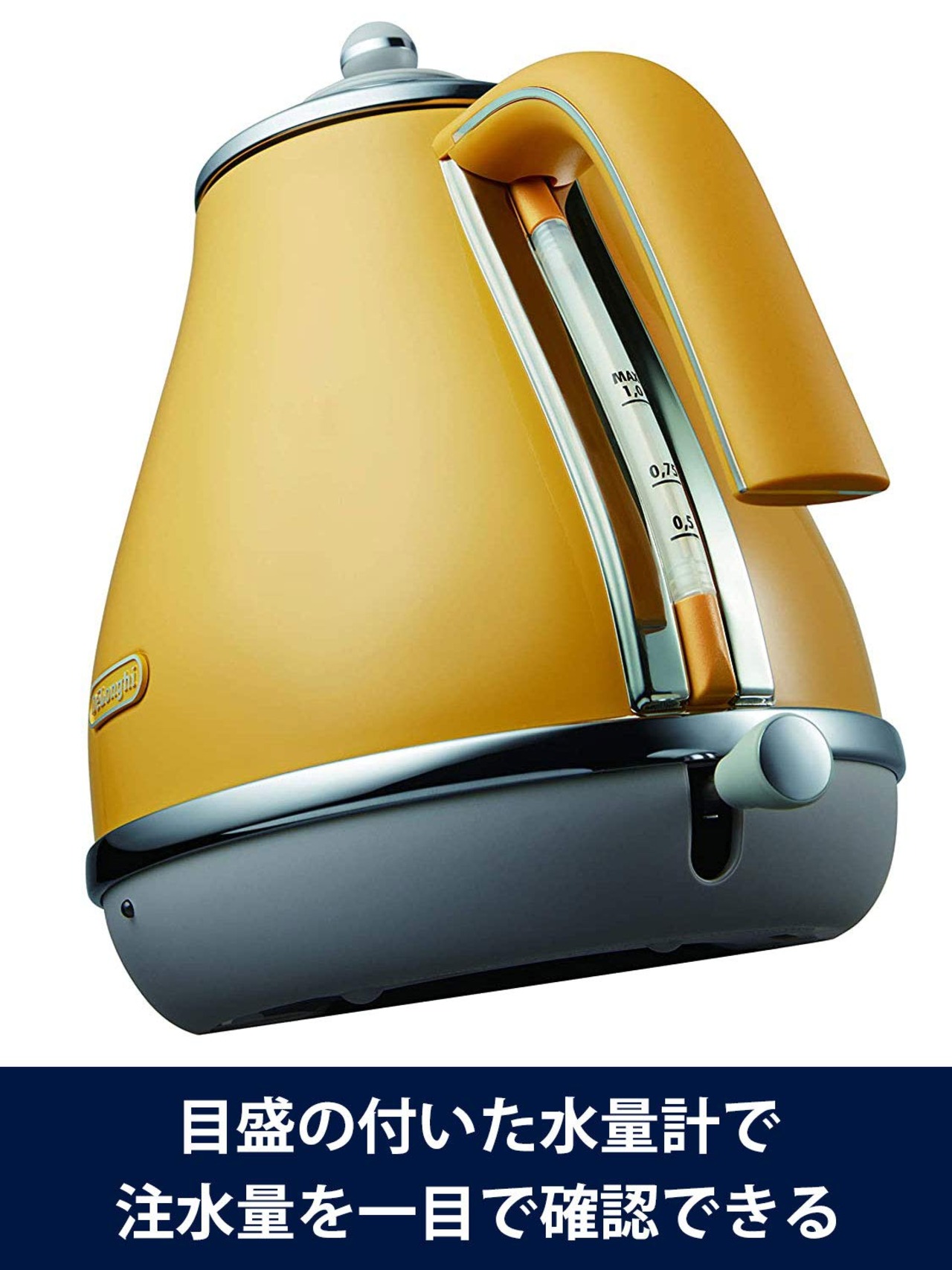 DeLonghi(デロンギ) De'Longhi電気ケトル アイコナ キャピタルズ KBOC1200J-Y ステンレス 1.0L 見やすい水量計 異物混入防止フィルタ 空だき防止機能 簡単お手入れ [ニューヨークイエロー] ファミリー登録で3年保証
