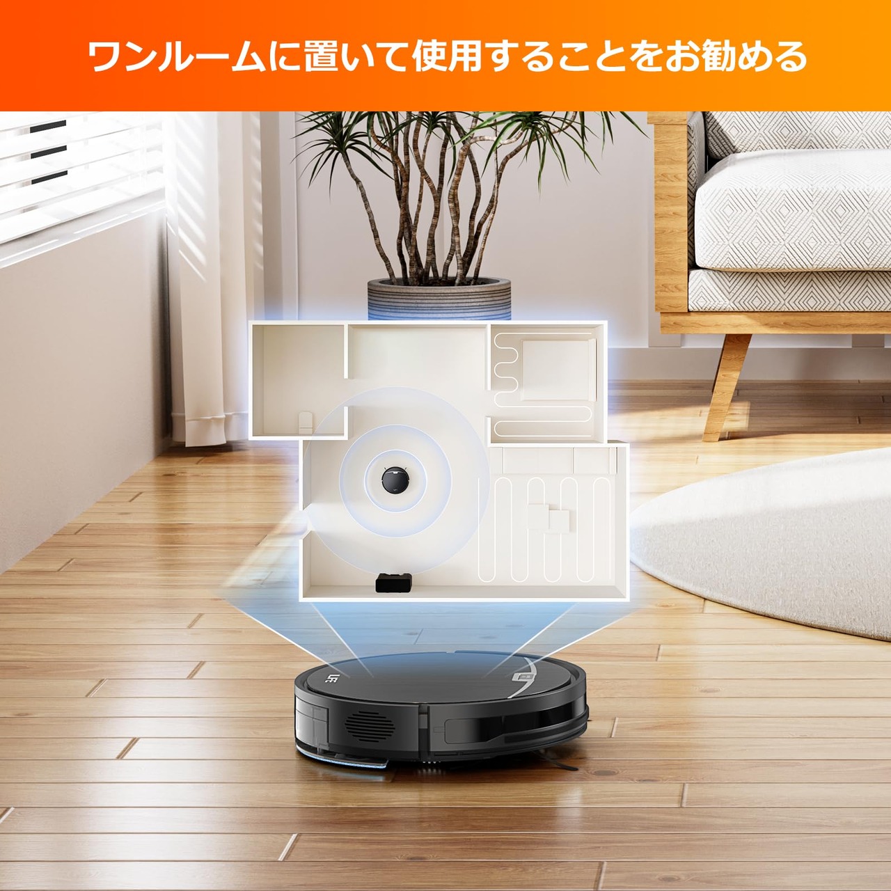 【ワンルームに置いて使用することをお勧める】ロボット掃除機はジャイロナビを搭載しているので、一人暮らしやワンルームでの使用におすすめです。コンパクトな本体とステーションだから、狭いスペースにもぴったり。
